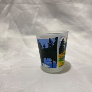 Mico Colorado Shot Glass Lakeland Multicolor Fog Glass 2.25 Inch Tall. Very clean and well-kept condition. No major damage or stains that we saw at all. May have Some light wear from use and storage but still in good condition.