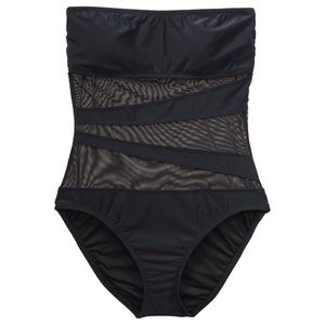 🌟BNWT!🌟Take on mesh madness in the Mossimo Micro Goddess Mesh-Inset Bandeau One Piece Swimsuit. This figure-flattering one piece flaunts your assets with sporty mesh inserts. Removable cups and a removable strap allow you comfort and sexiness. Material: 80% Nylon, 20% Spandex. Lining: 100% Polyester. Machine wash normal, Tumble dry, normal.