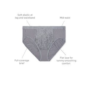 Features: Flat geo lace tummy panel for light tummy control; clean finish cotton gusset; soft flat elastic at leg opening and waistband