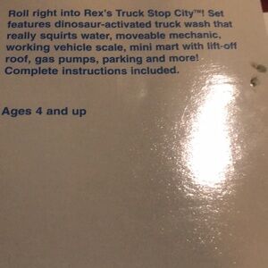 Vintage micromachines Rex truckstop city, set features dinosaur activated truck wash that really squirts water, movable mechanic, working vehicle scale, minimart with lift off roof, gas pumps, parking and more complete instructions included. Avon 1998 never opened.