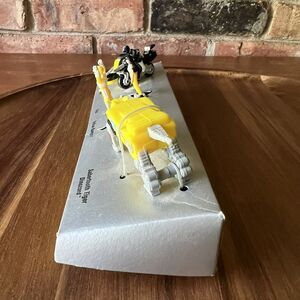 This Micro Machines Mighty Morphin Power Rangers set features the iconic Yellow Ranger Trini and includes a Mastodon Bike, a Sabertooth Tiger Dinozord, and a Battle Bike. Fans of the original TV show and movie will appreciate the attention to detail, including moving Dinozord jaws and a vibrant yellow and black color scheme. The set is made of durable plastic and is in its original packaging, making it a great addition to any collection. With its mixed martial arts sport theme and superhero genre, this set is sure to impress both fans and collectors alike. Don't miss out on the chance to own a piece of Power Rangers history!
