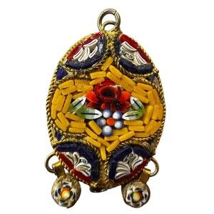 Micro Mosaic Multi-Color Floral Tile Gold Tone Italian Pendant