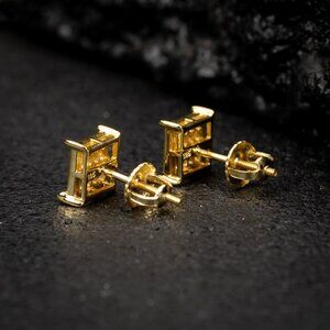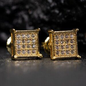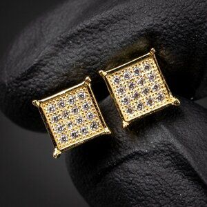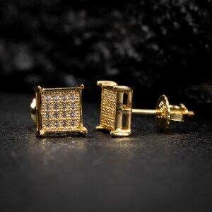 STONE: 5A High quality Cubic Zirconia. These Mens yellow gold square earrings have the brightest and most clearest CZ Stones on the market. SIZE: 7mm (Small Size Earrings) These Mens square 14k gold earrings are the best size for any occasion. You can’t go wrong with these square gold screw back earrings.MATERIAL: 925 Sterling Silver with 14k Gold Plating. These small hip hop earrings are made of the finest material, making them the best square stud earrings for your ears. No green skin or irritation with these studs, making them hypoallergenic.