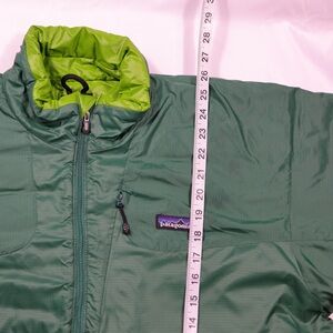 Shell: 1.3-oz., 22-denier double ripstop polyester (90% recycled). Lining: 1.2-oz. 22-denier polyester (50% recycled) with a Deluge® DWR finish. Insulation: 3-oz. Climashield® Green continuous filament polyester (40% recycled)