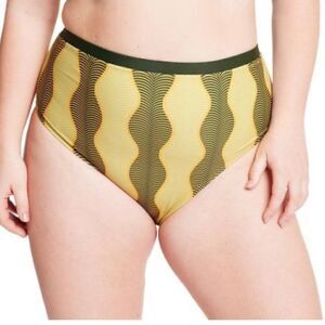 Micro Wave Print Cheeky HighWaist Bikini Bottom FeNoelxTarget MutedGreen NWOT 2X