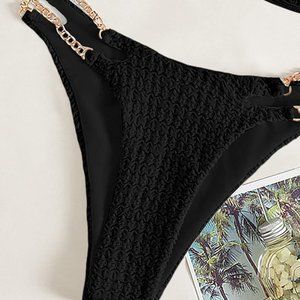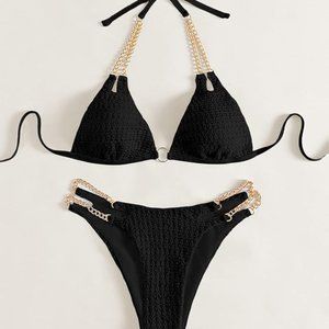 ~ Ring linked, chain detail, micro triangle halter bikini set, 2 piece bathing suit