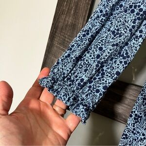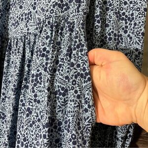 This super comfortable blue micro floral print dress from Boden has a mock-neck with cute button detail at the back and peasant/prairie sleeves. Elegant floral dress in a beautiful blue shade. Perfect for any occasion. Made from a viscose/elastane blend is super soft and comfy. Item is preowned and in excellent condition.