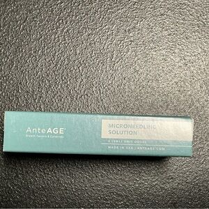 AnteAGE Microneedling Solution contains pro-healing, anti-inflammatory growth factors and cytokines derived from laboratory culture of human bone marrow mesenchymal stem cells, the specialized cells that science has determined function as “command and control” of healing in all injured tissues. Hyaluronic acid provides lubrication and is a powerful humectant that promotes rapid re-hydration and volume enhancement within the upper layers of the skin. AnteAGE products contain no cells or cell remnants (they are removed during ultrafiltration, the final step in the laboratory culture process).