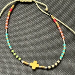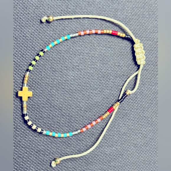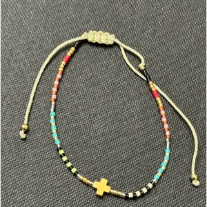 Micro-bead pull string bracelet with cross