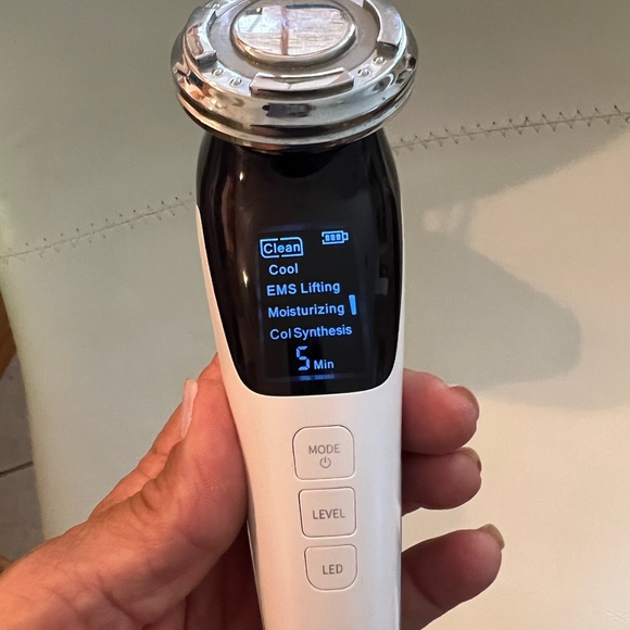 Microcurrent, vibrating cleansing mode, led red light, radio frequency and cool mode for a full facial. Fantastic price for a skin device……google similar ones and you will see! Thanks for looking!