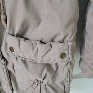 Microfiber Coat. Has both snaps and zipper. Front pockets have snaps too.