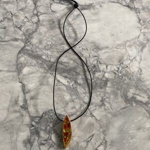 Glass micromosaic pendant with leather strap, bought in Italy by a friend in the 1990’s.
