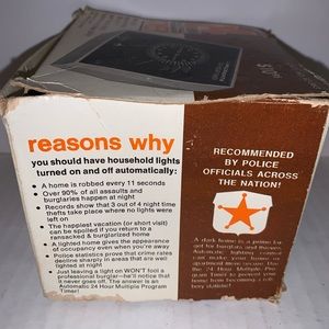 Micronta 24-Hour Multiple Program Timer. Manufactured For Radio Shack. Box Has Some Issues Which Can Be Seen In The Pictures. I Do Not Know If This Item Works.