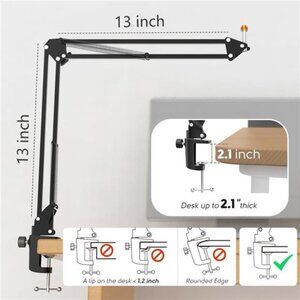 🧿UPGRADED DESK CLAMP of MIC STAND- In comparison to other versions, this metal desk clamp is built with anti-scratch pad and wider mouth up to 2" to fit most desktop. It also has a fixed knob, so the swing arm does not move freely after the knob is locked.
