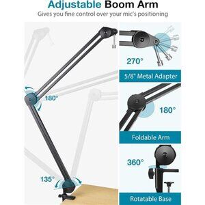 🧿Upgraded Length & Flexible Angle: The boom arm is fully adjustable at 135° back and forth and 180° up and down, having a max reach of 38 inches horizontally and 37 inches vertically for your convenience. It allows you to position microphones freely within an adjustable range and will not bounce up.
