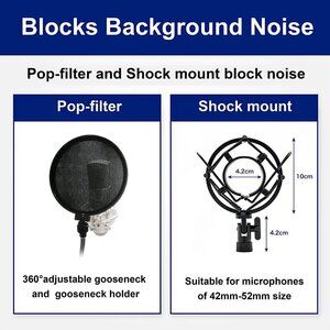 -【Pop-Filter】Compatible with microphones from 45mm to 55mm in diameter. Example: MPM-1000, AT2035, AT2020, NW-800, NW-700, FifineK699B, QuadCast, etc. (Large diameter microphones such as Blue Yeti, Razer seiren, etc. may not fit the size)
