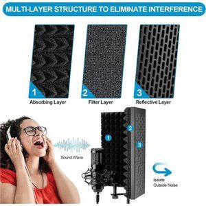 Microphone Isolation Shield, Foldable Adjustable Durable Studio Recording