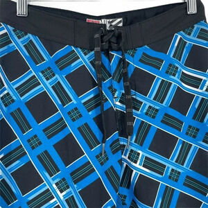 Micros Shorts Boy's Sz 14 Swim Trunks Drawstring Pocket Casual Plaid Blue Black