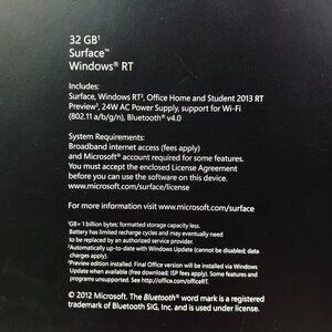 Microsoft Surface 32GB Windows RT tablet, sealed in box (Dark Titanium color). UPC 885370447705. Ships safely bubble wrapped in a padded, secure box :)