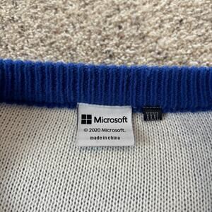 The Microsoft Sweater in size XXXL is a white and blue pullover perfect for the 2020 festive season. Made in a tight-knit fabric with a crew neck and long sleeves, this sweater is machine washable for easy care. Featuring the iconic Windows character and Microsoft brand logo, it is a fun and quirky addition to any man's wardrobe. Suitable for fans of computers and Christmas, this sweater is sure to make a statement and spread some holiday cheer.