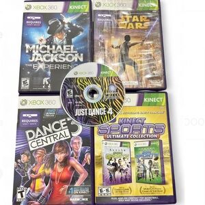 Includes Michael Jackson Experience, Star Wars Kinect, Just Dance 4, Dance Central 3, and Kinect Sports Ultimate Collection. Perfect for Xbox 360. Enjoy diverse gaming experiences.
