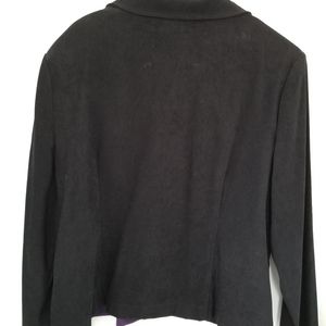 Great block pattern microsuede jacket. Excellent like new Condition, No flaws at all. Easy care. Machine wash and dry. Size-Petite Large. Purple, Black and Burgundy. Front full zipper. Light weight and very comfortable. Very versatile. Great for casual or for business office.