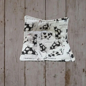 Microwave Bowl Cozy, Reversible Cows and Black and White Ticking.