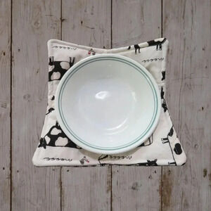 Microwave Bowl Cozy, Reversible Cows and Black and White Ticking