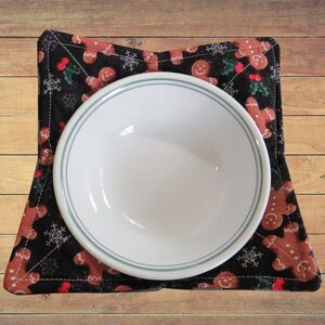Microwave Bowl Cozy, Reversible Gingerbread Men and Black and White Check