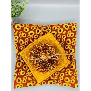Microwave Bowl Cozy Reversible, Metallic Sunflowers, Gift Set of 3!