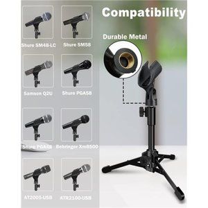 Mictop Desktop Mic Stand Portable Foldable Tripod with Mic Clip Holder