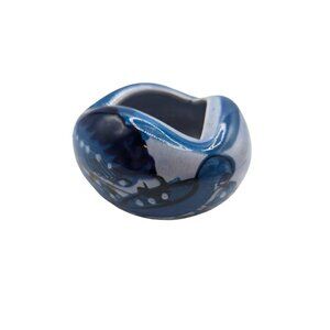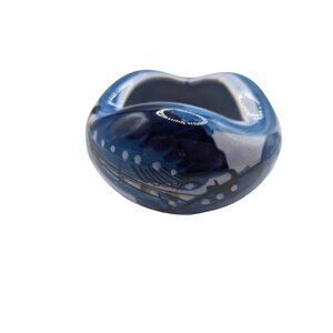 Tonala bowl or ashtray or trinket dish with bird This unique, handmade ceramic art vase features an abstract floral design in blue and white. Signed by the artist, and adds an artistic touch to any decor.
