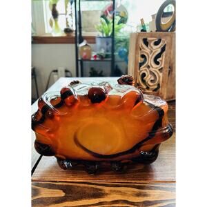 Mid 20th Century Hand Blown Art Glass Brown Black Animal print Applied Handle