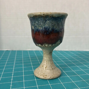 Beautiful Mid 20th Century Stoneware Wine Goblet Studio Art Pottery. Goblet measures 5 1/2 inches tall.