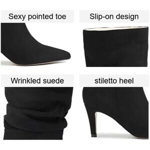 Mid Calf Boots Pleated Suede Stiletto Pointed Toe Slouchy Slip On Ankle Boots
