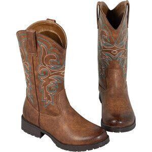 LIGHTWEIGHT & BREATHABLE: Forget heavy, clunky boots. The round toe cowboy boots are designed to be lightweight and have a soft mesh lining. This keeps your feet cool, dry, and comfortable, even if you wear them all day.