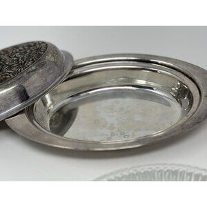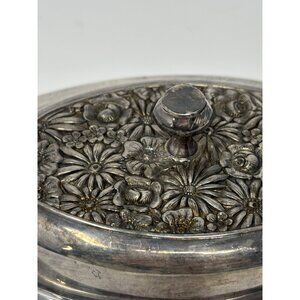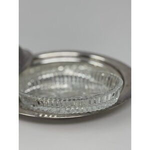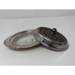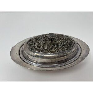 Mid Century Aluminum Silver Metal Butter Dish Pressed Daisies Glass Insert