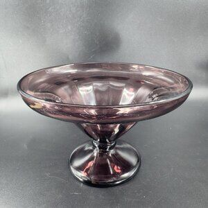 Mid Century Amethyst Footed Glass Bowl Manganese 365nm UV Glow Centerpiece Dish