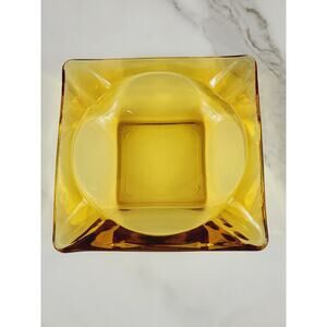 Mid Century Ashtray Square Amber Glass 4 3/4" Yellow Glass Art 70's Home Decor