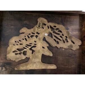 Vintage solid brass bonsai tree wall hanging. This wall decor is heavy! There's a hook in the back for easy hanging. Measures about 10 x 13. Made in India. In excellent vintage condition.