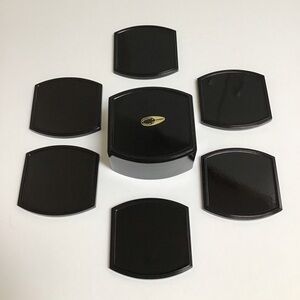 Mid Century Benjamin & Medwin Black Laquerware Coaster SET OF 6 Boxed Bar Japan