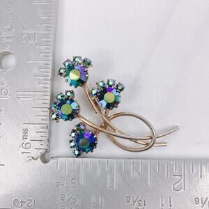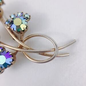 Style/Era: Mid-century floral spray design; 1950s–1960s costume jewelry; stylized flower motif with iridescent rhinestones