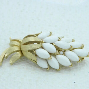 Mid Century CROWN TRIFARI Gold Tone White Lucite