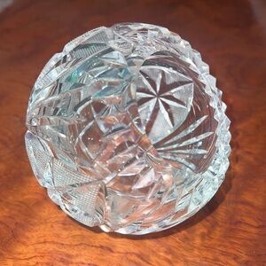 Mid Century Cut Crystal Sphereical Orbit Ashtray Trinket Jar