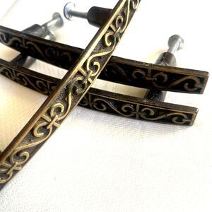 Mid Century Drawer Pulls 3" Bronze Gold Brass Set 3pcs Filigree Scrolls Handles