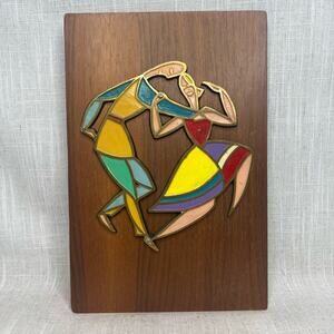 Mid Century Enamel on Brass Wood Dancers Plaques Dayagi Israel Style Vintage - Ready to Hang