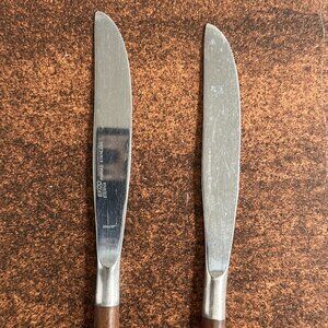 Mid Century Faux Wood Handled Knives Set Of 2 Ekco Eterna Canoe Modern Forged