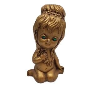 Mid Century Gold Kitsch Sassy Nakey Girl Angel Statues with Green Jeweled Eyes, Set of 3, 7" Each