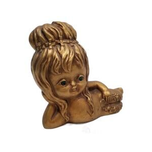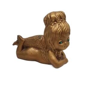 Mid Century Gold Kitsch Sassy Nakey Girl Angel Statues, Set of 3, 7"