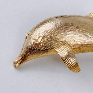 Mid Century Gold Tone Dolphin Brooch Figural Marine Animal Vintage Jewelry